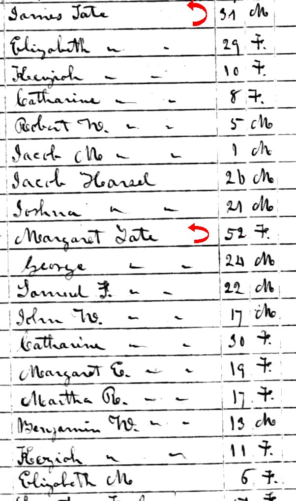 - 14- iii. Catherine Tate(1816–) born Oct 1816, Hampshire, VA