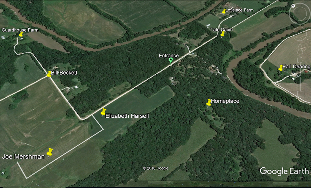 Each of these residences could be listed in the 1900 census as “Fabius Township,” because there was no mail delivery, no public school routes, no paved roads, and there were no street addresses. But, since George Tate, age 76, was residing in the home with Head of Household, Fred J Tate, and others, we presume this residence to be the Homeplace.